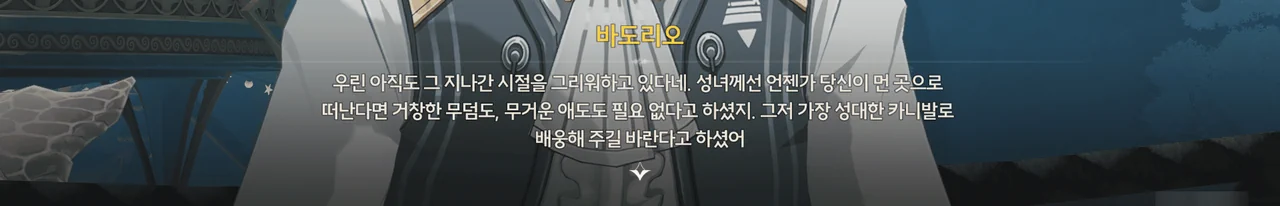 카니발에서 우승한 후 하늘에서 내려온 월계관을 쓰고 수호신과 대화할 기회를 얻은 바도리오가 수호신과 한 대화가 정말 압권이다.