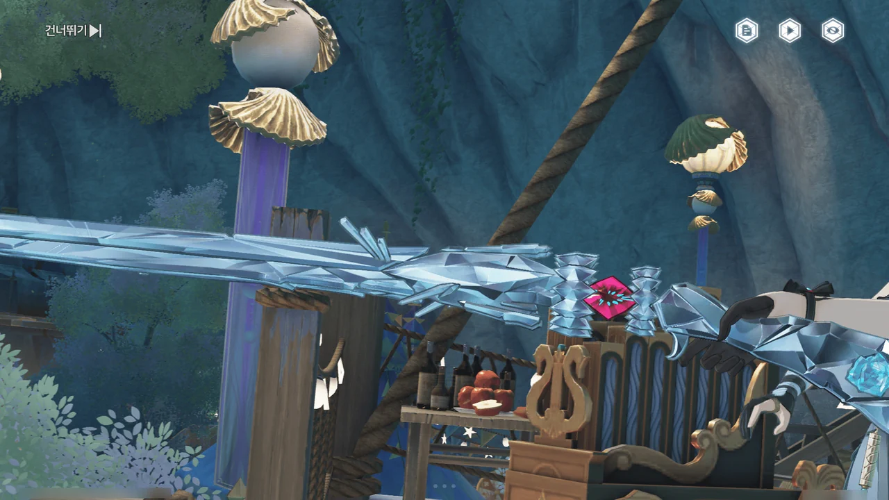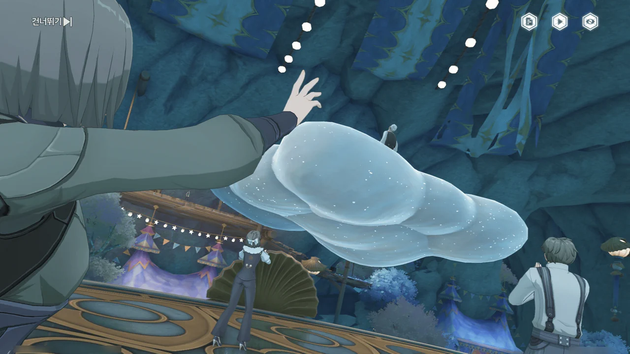 구름 제조기를 통해 구름 쿠션을 만들어 바도리오가 안전하게 내려올 수 있도록 해야 한다.