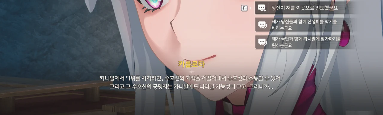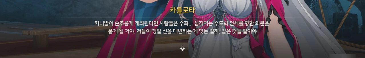카를로타의 목표는 카니발의 성공적인 개최를 통해 개인 단말기 사업을 홍보하고, 겸사겸사 수도회의 민낯을 까발리는 것이다.