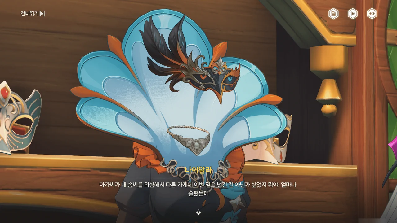 카를로타가 나이알라에게 가장 좋은 재료로 최선을 다해 만들라고 주문한 걸 보면, 이 가면은 단순한 선물이 아닌 것 같다.