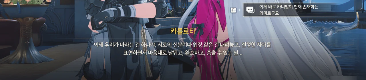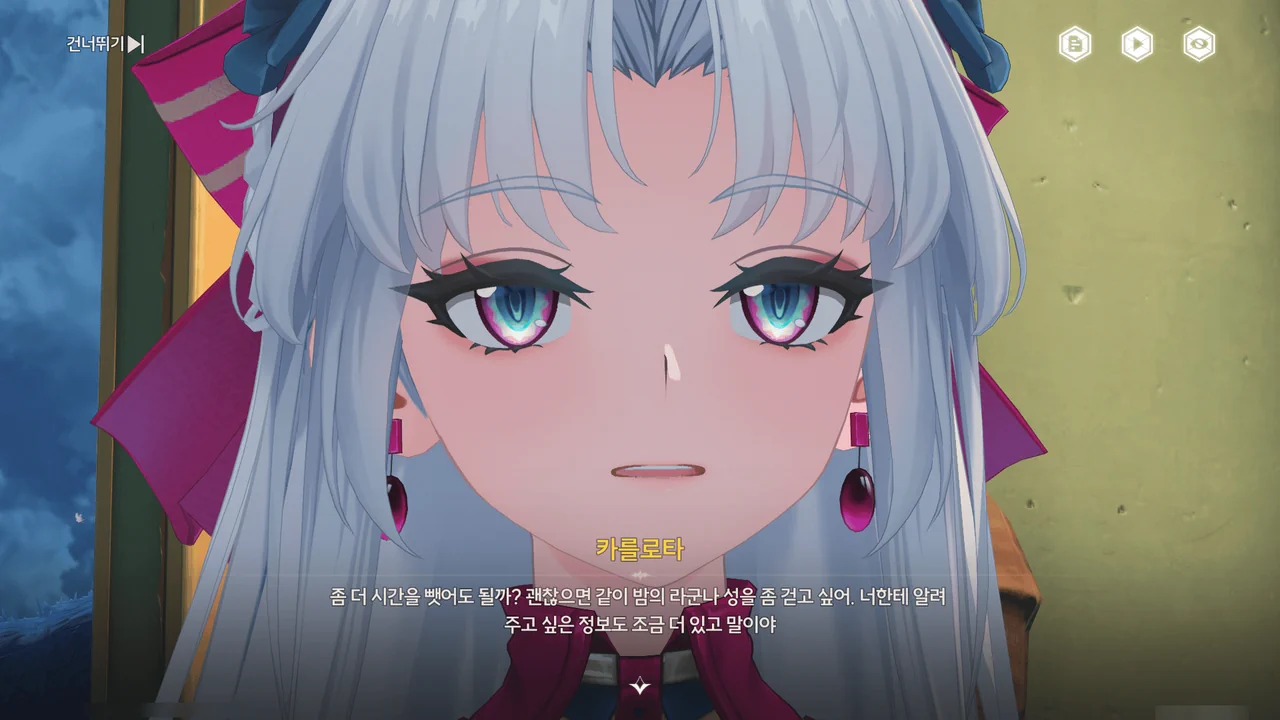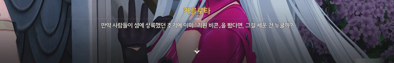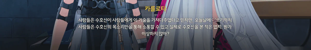 음… 카를로타가 쑥스러워하는 걸 보니, 마치 카를로타가 방랑자에게 마음이 있다는 의미로 보이는데… 단순히 내가 지나치게 생각하고 있는 거겠지?