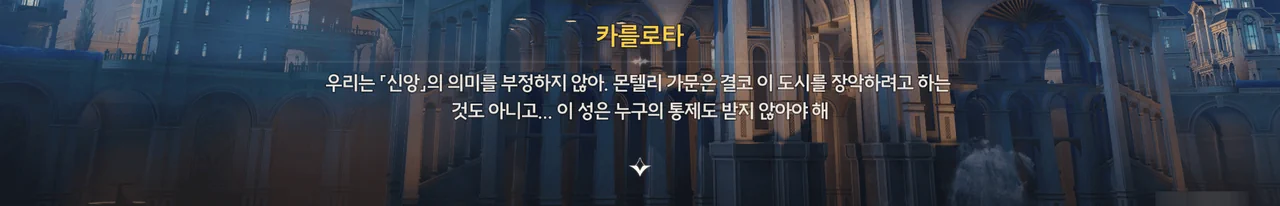 몬텔리 가문 하나의 힘만으로는 리나시타에 변화를 줄 수 없었기에, 카를로타는 검은 해안의 힘을 이용하기로 마음먹었다.