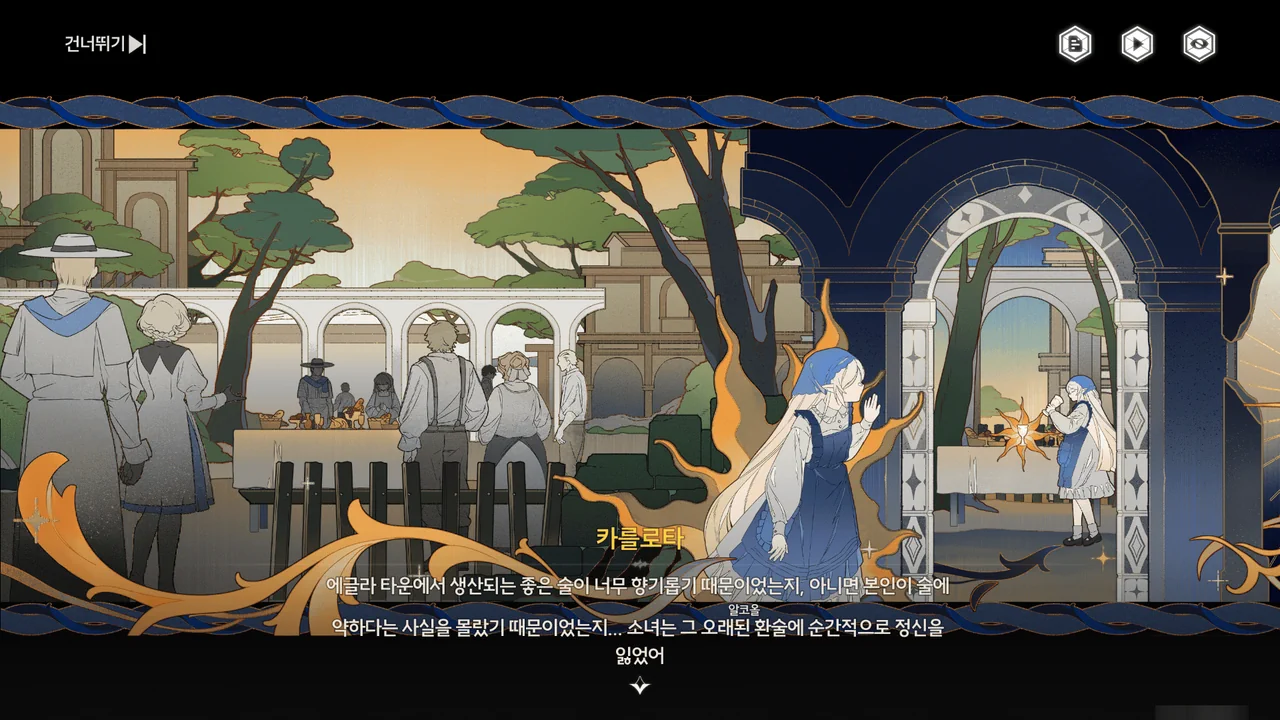 도중에 회유의 고래의 공격을 받아 배가 전복된 건 카를로타도 미처 예상치 못한 사고였겠지만, 아무튼 브렌트와 우인 극단이 방랑자를 구조할 수 있었으니 아무튼 잘 된 일이겠지.