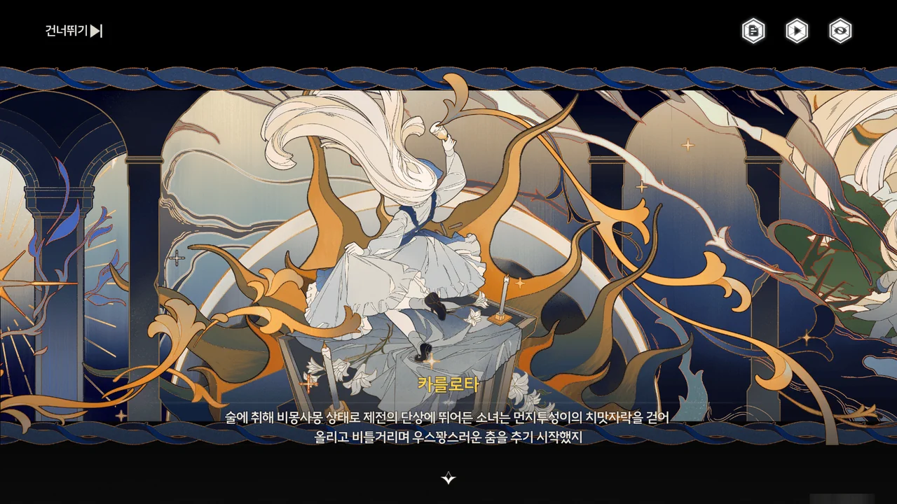 아무리 우인 극단의 연극이 즉흥 공연이라고 하지만, 방랑자가 한 거라고는 무대 위에서 브렌트의 내레이션을 따라 카를로타와 한 번 춤춘 게 전부잖아.