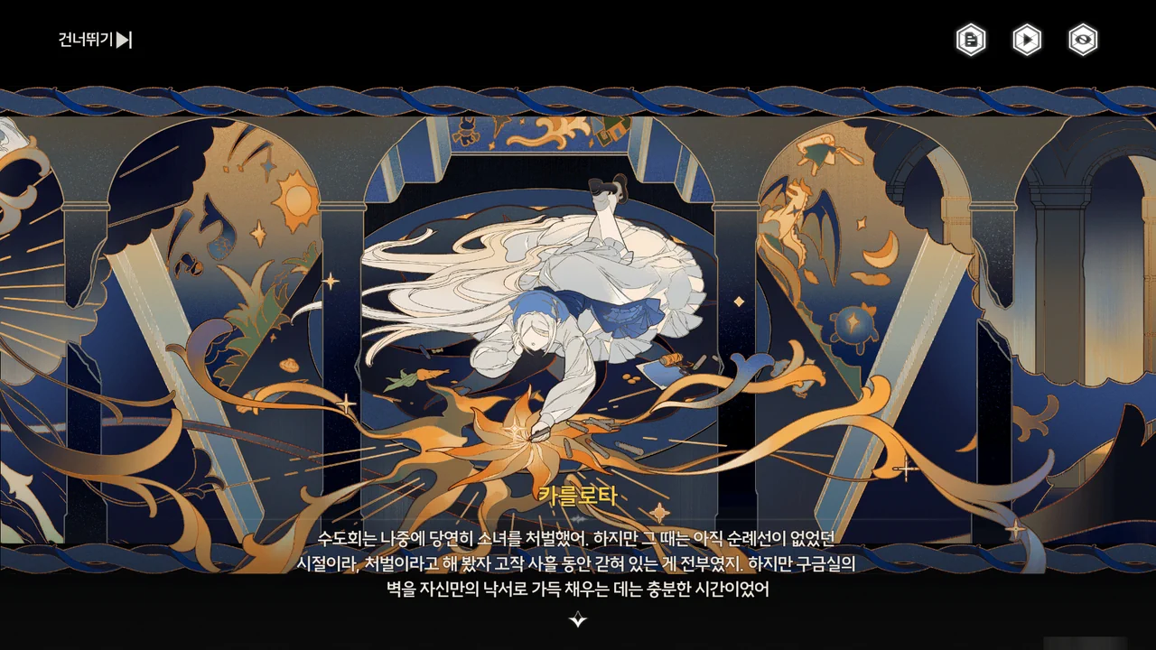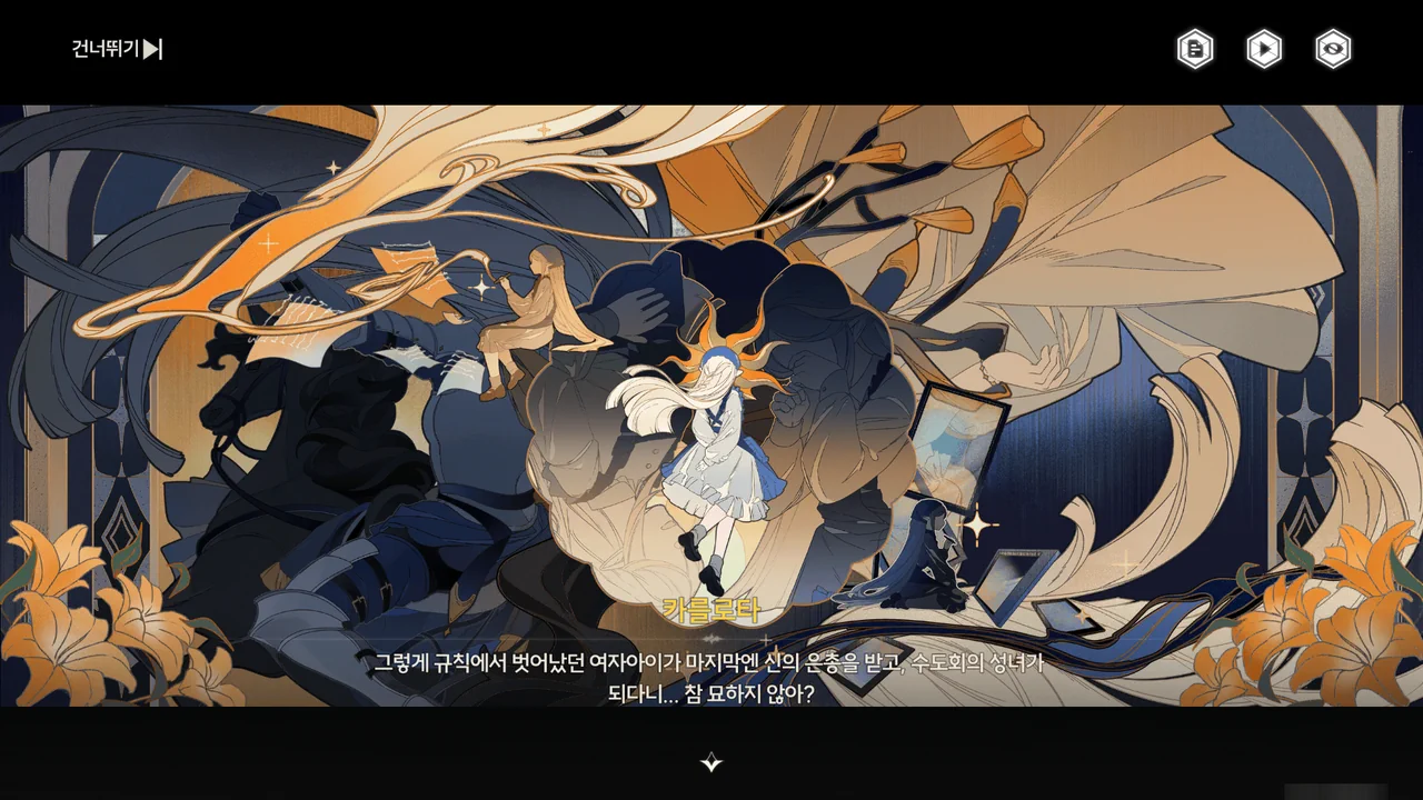 게다가 성녀가 과거 카니발에서 펼쳤던 연극 역시 이런 '영웅극'이었으니, 진실을 숨기고 있는 수도회 사람들에겐 나름 정곡을 찌르는 내용이 될 거고.