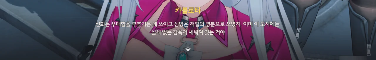 그런 말썽꾸러기 소녀를 자신의 대변자로 선택한 수호신이, 수도회가 말하는 것처럼 카니발을 절제 없는 향락이라 생각해 흑조라는 재앙을 내렸을 것 같지가 않거든.
